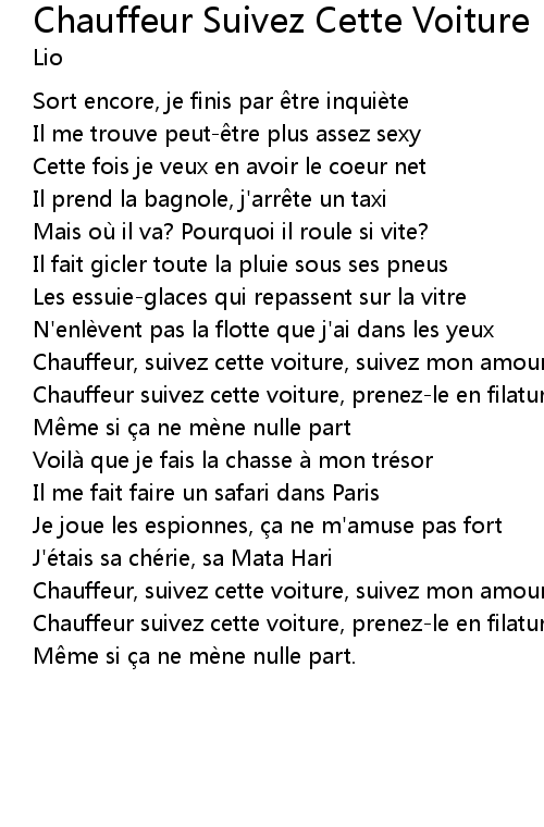 | Chauffeur, suivez cette voiture, suivez mon amour qui part | |