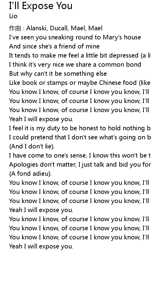 | You know I know, of course I know you know, I' ll expose you. | |