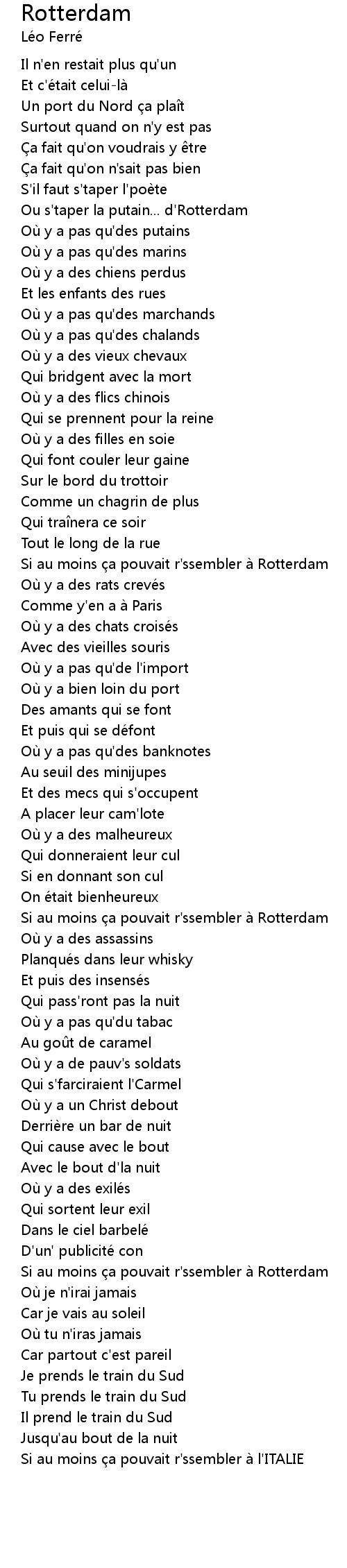 | Si au moins ça pouvait r'ssembler à Rotterdam | |