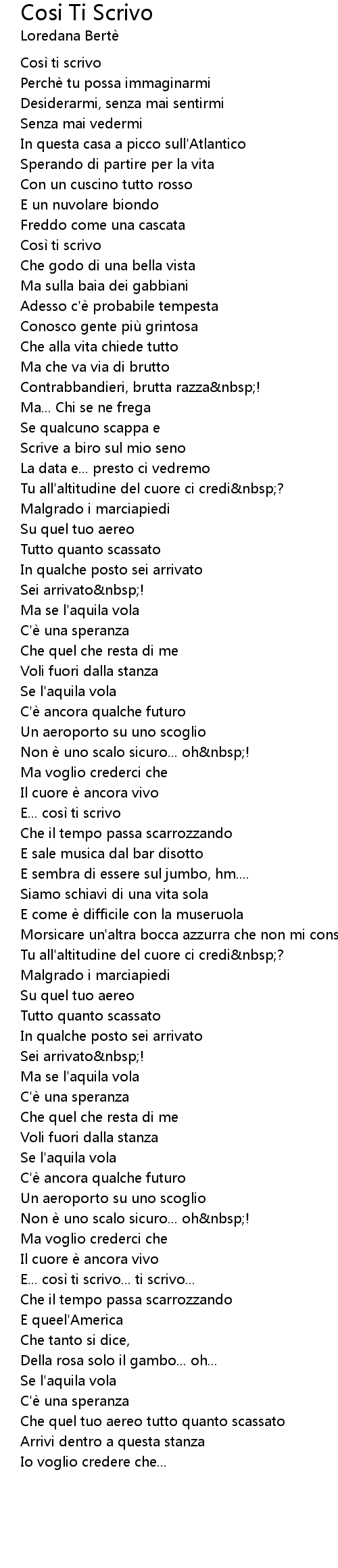 | Tu all' altitudine del cuore ci credi nbsp? | |