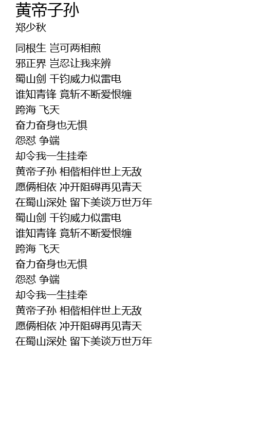 | [01:10.000] | 黄帝子孙 相偕相伴世上无敌 |