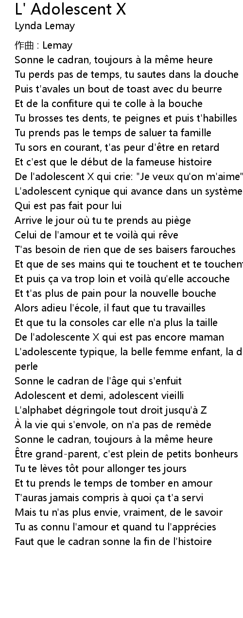 | De l' adolescent X qui crie: " Je veux qu' on m' aime" | |