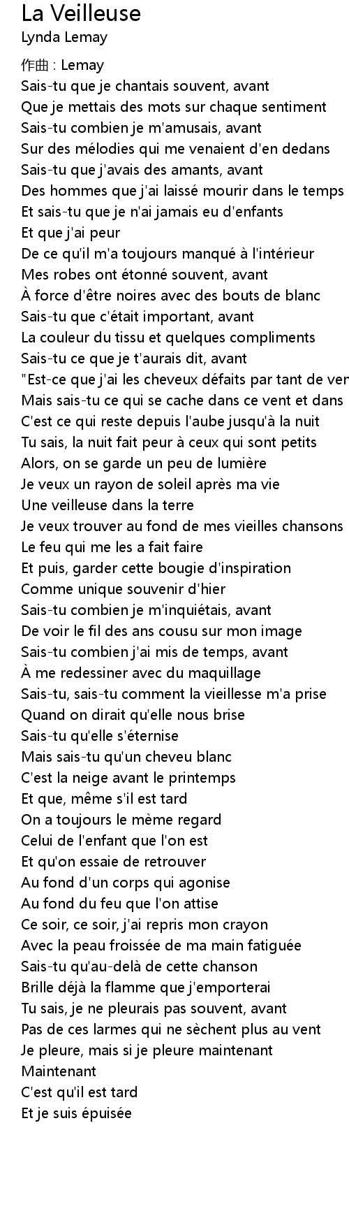 | Sais-tu, sais-tu comment la vieillesse m'a prise | |