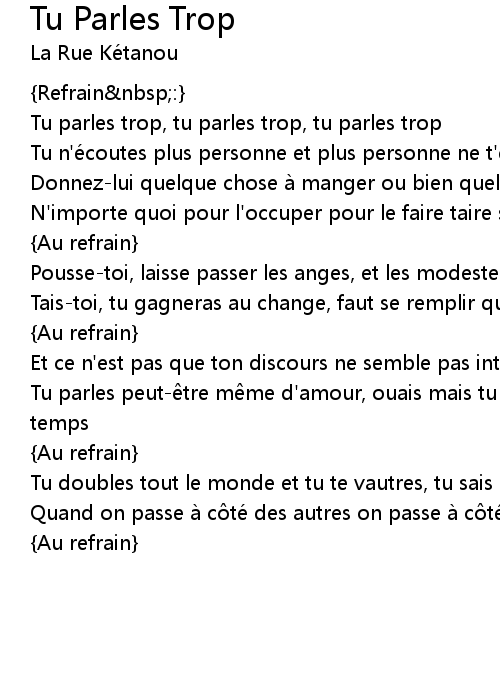 | Tu parles trop, tu parles trop, tu parles trop | |