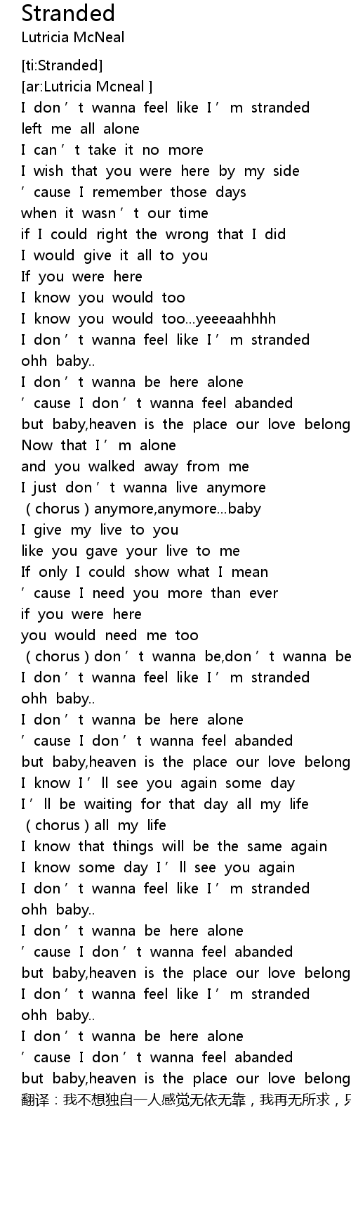 | [00:14.53] | I don ' t wanna feel like I ' m stranded |