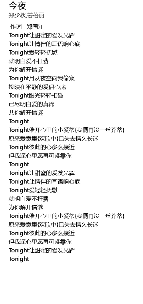 | [00:17.89] | Tonight让情伴的耳语响心底 |