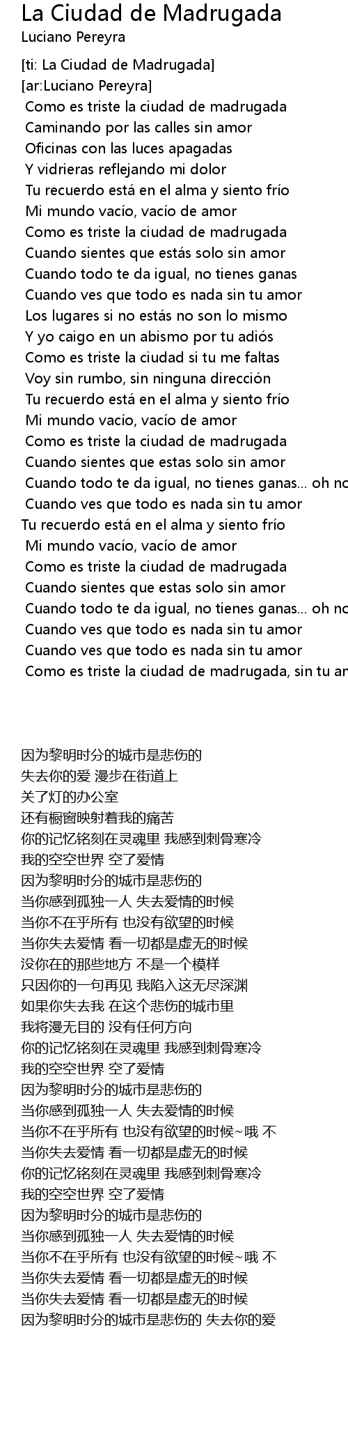 | [04:38.00] | Como es triste la ciudad de madrugada, sin tu amor |