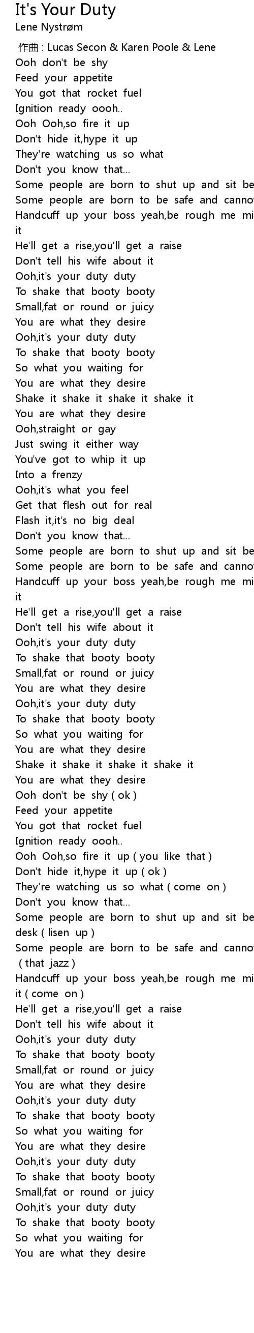 | [02:19.891] | Handcuff up your boss yeah,be rough me might like it like it(come on) |