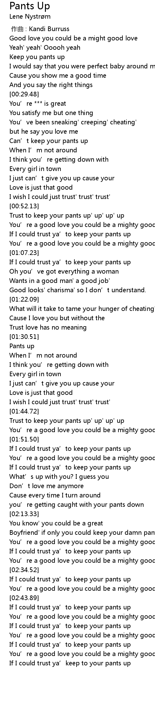 | [00:53.10] | Trust to keep your pants up' up' up' up |