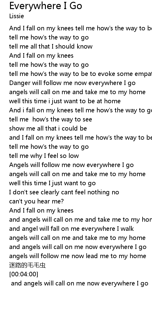 | 03: 41: 00 and angels will call on me now everywhere I go | |