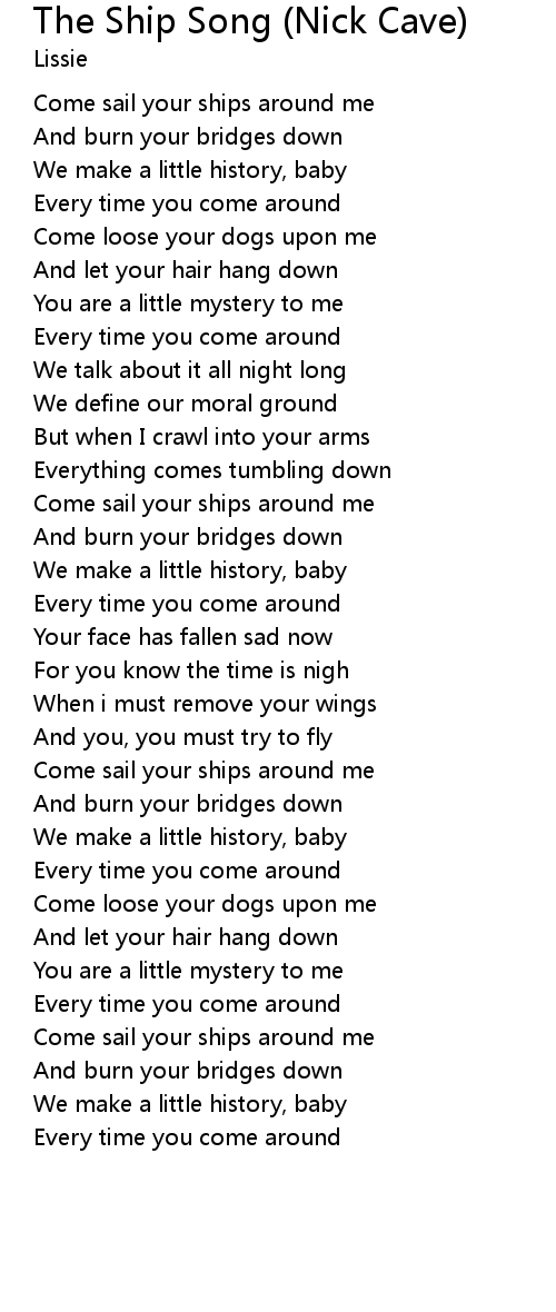 Come sail your ships around me |