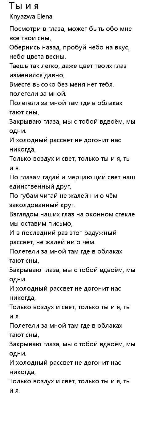 Ты и я  Lyrics
