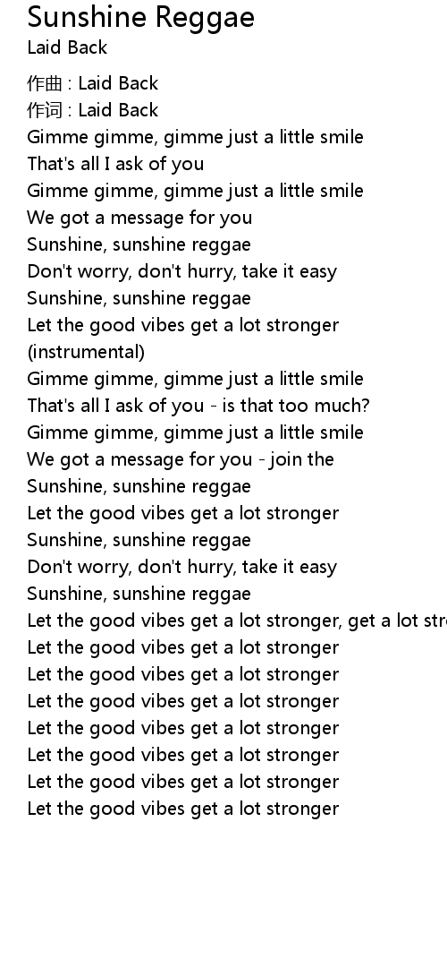 | Sunshine, sunshine reggae | |