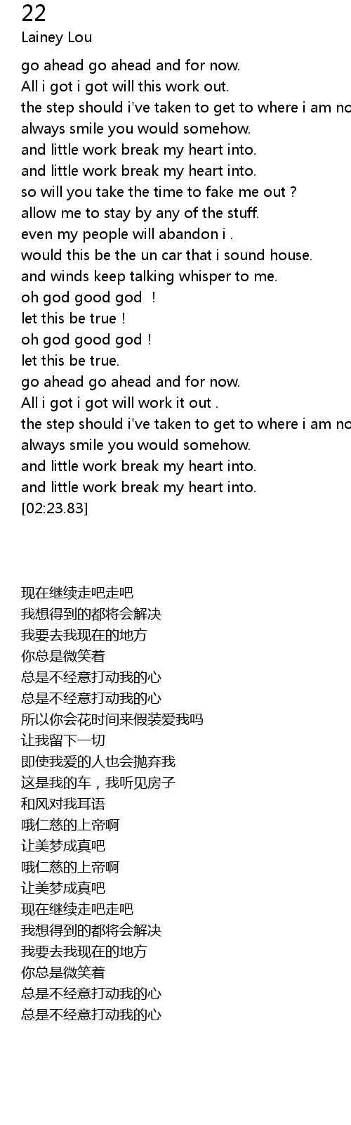 | [02:18.25] | and little work break my heart into. |