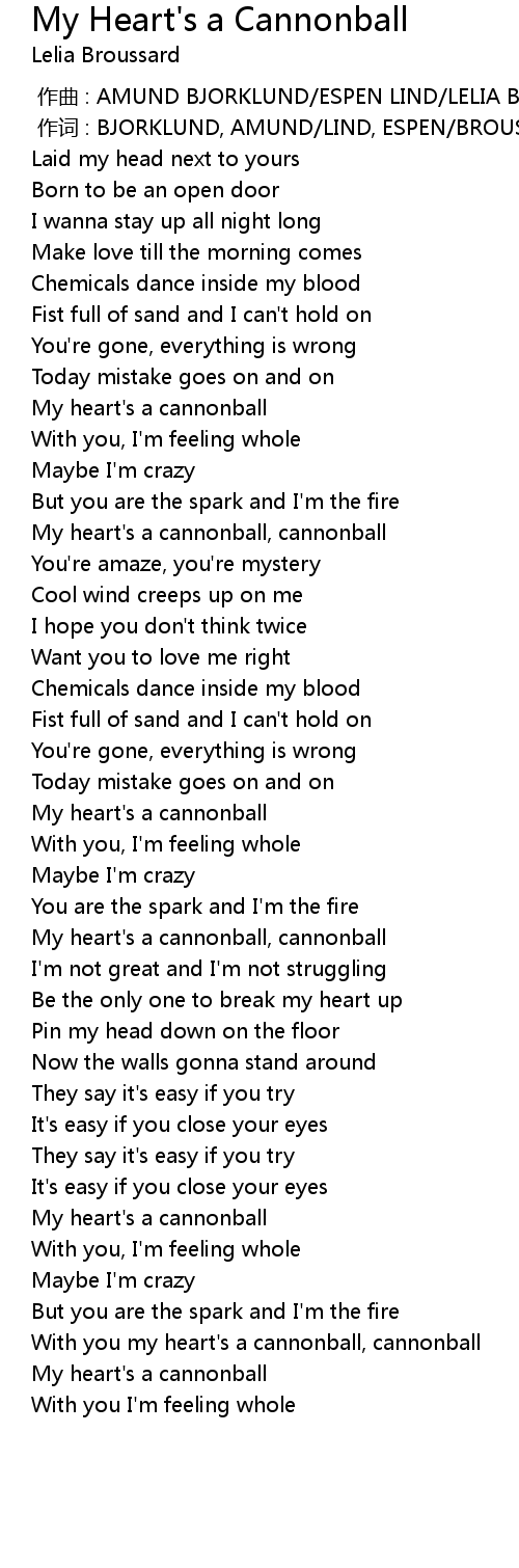| [00:55.31] | My heart's a cannonball, cannonball |