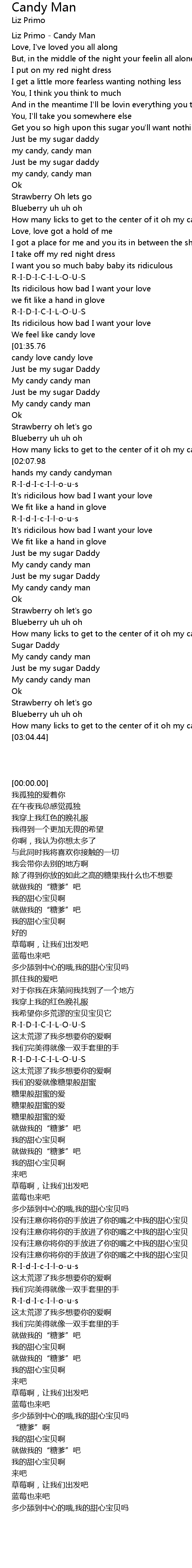 | [00:00.00] | Liz Primo - Candy Man |