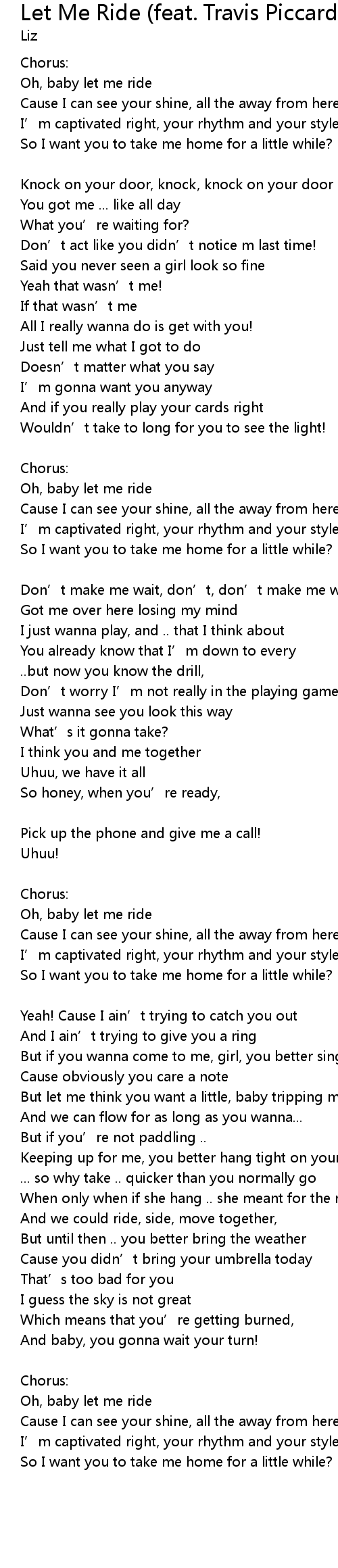 | Oh, baby let me ride | |