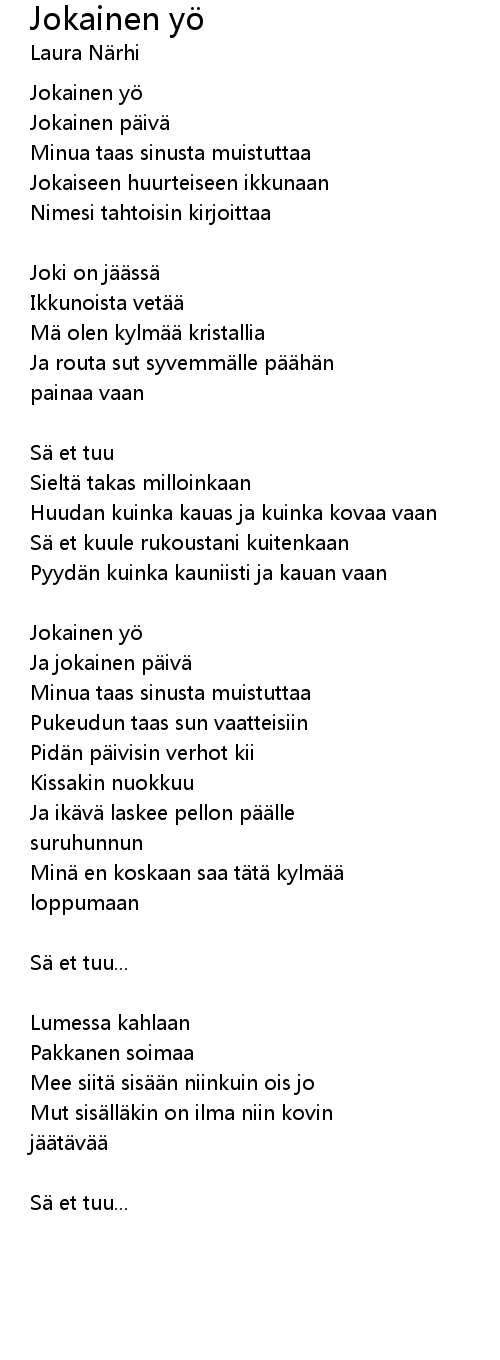 | Pyydän kuinka kauniisti ja kauan vaan | |