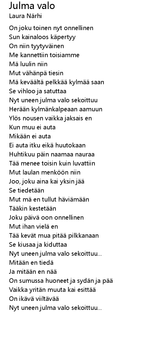 | Nyt uneen julma valo sekoittuu | |
