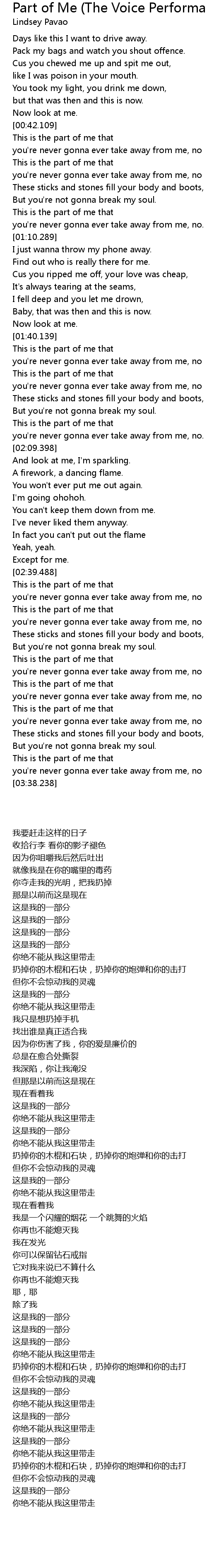 Part of Me (The Voice Performance) Lyrics
