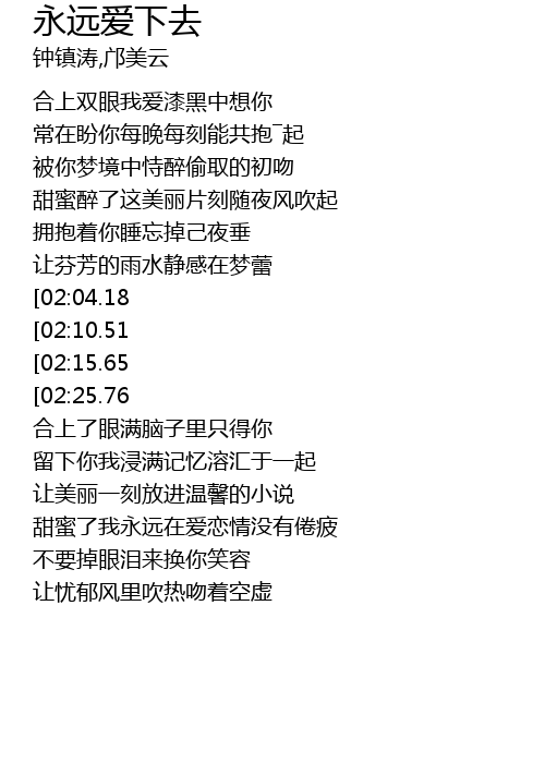 | [01:43.89] | 甜蜜了我永远在爱恋情没有倦疲 |