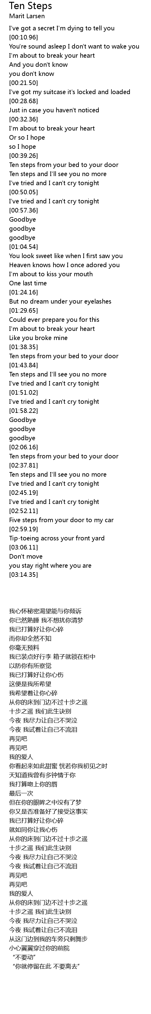 Ten steps and I'll see you no more |