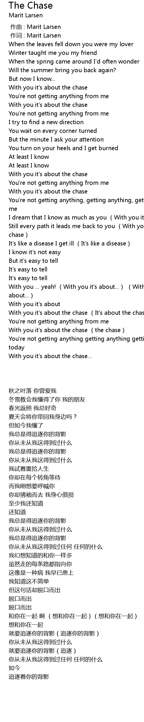 | [02:42.75] | With you it' s about the chase It' s about the chase |