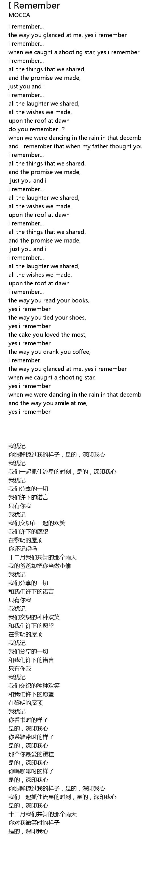 | [00:16.27] | when we caught a shooting star, yes i remember |