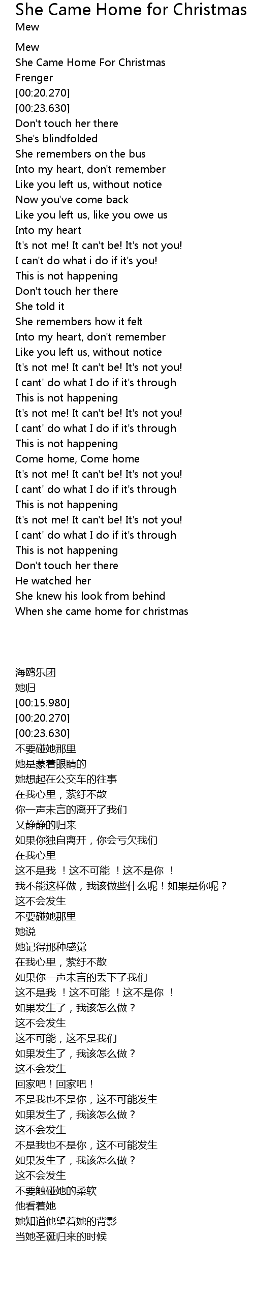 | [00:11.100] | She Came Home For Christmas |