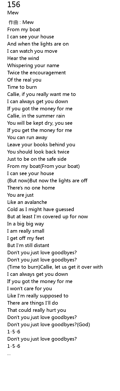 | [02:58.29] | (Time to burn)Callie, let us get it over with |