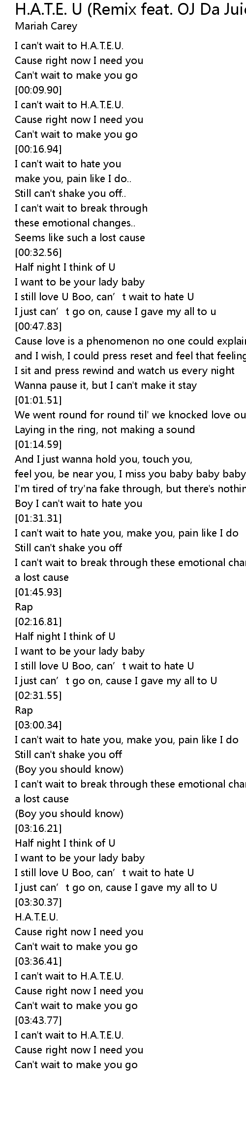 | [00:02.97] | I can' t wait to H. A. T. E. U. |