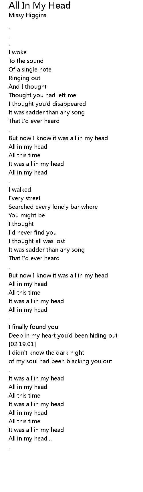 | [02:41.79] | All in my head |