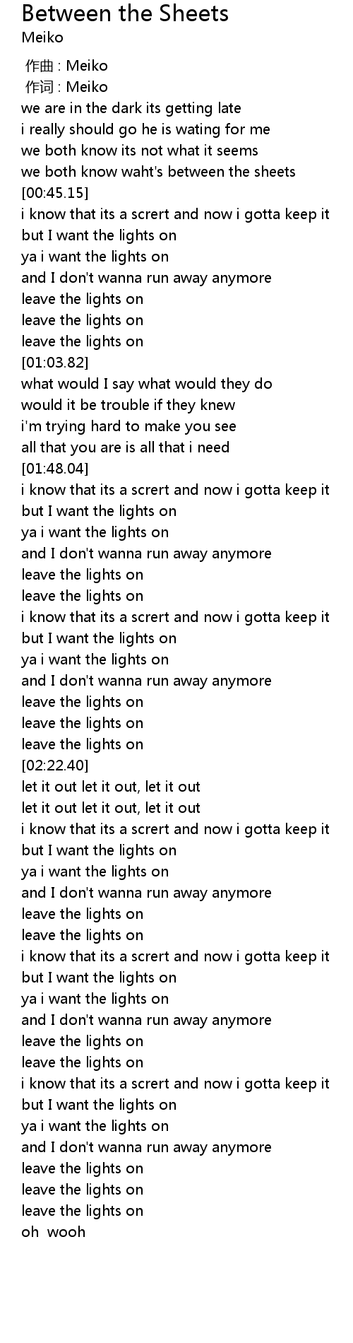 | [00:46.65] | i know that its a scrert and now i gotta keep it |