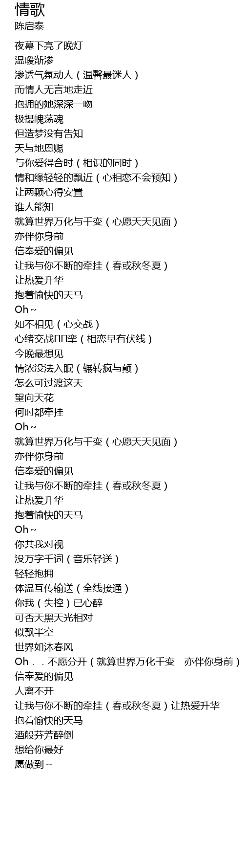 | [03:01.54] | Oh..不愿分开(就算世界万化千变 亦伴你身前) |