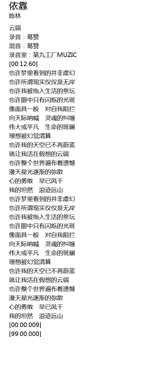 | [00:10.95] | 录音室:第九工厂MUZIC |