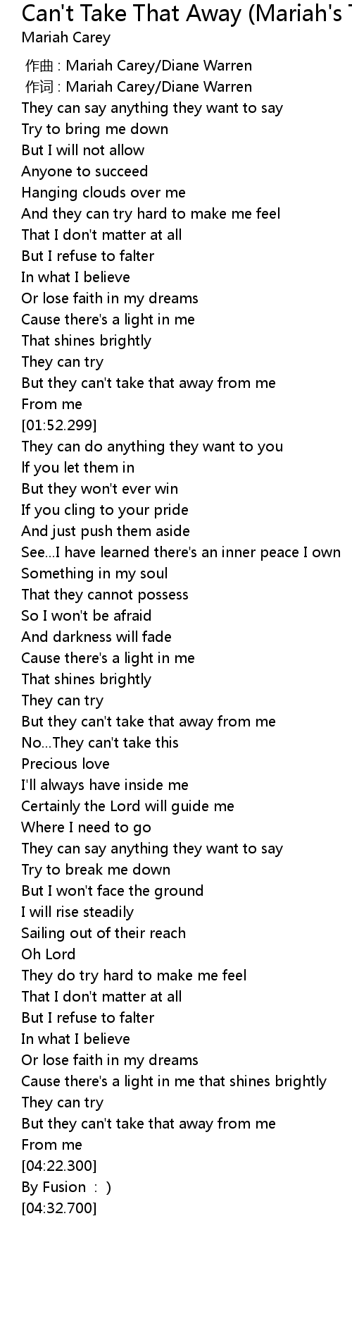 | [04:05.800] | But they can't take that away from me |