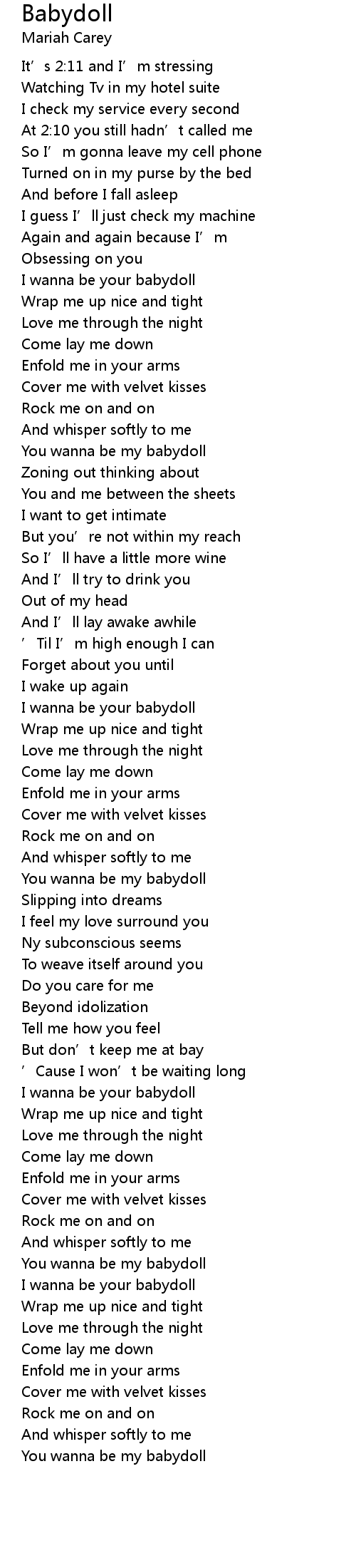 | [02:20.64] | You wanna be my babydoll |