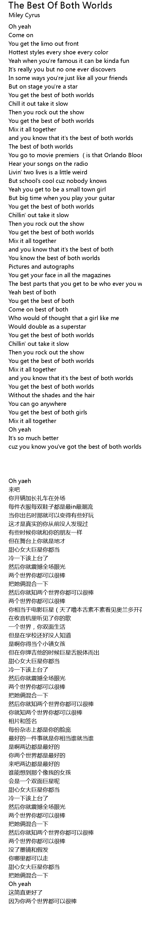 | [02:49.09] | cuz you know you' ve got the best of both worlds |