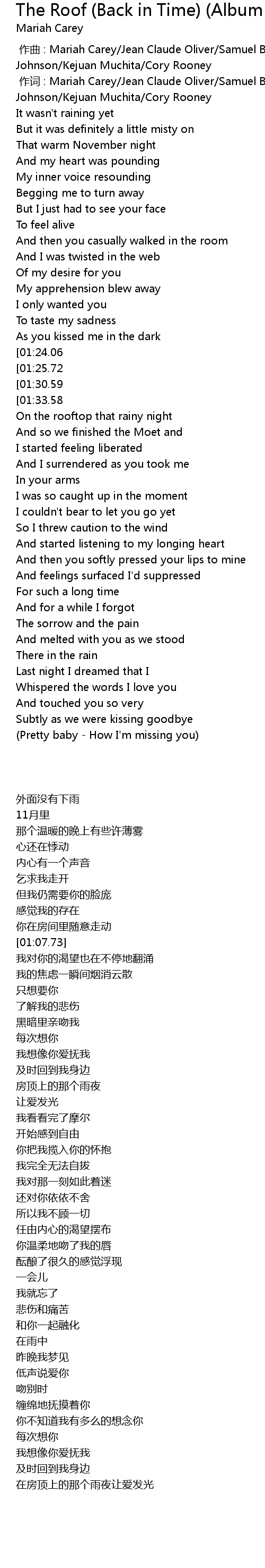 | [00:01.00] | 作词 : Mariah Carey/Jean Claude Oliver/Samuel Barnes/Albert Johnson/Kejuan Muchita/Cory Rooney |