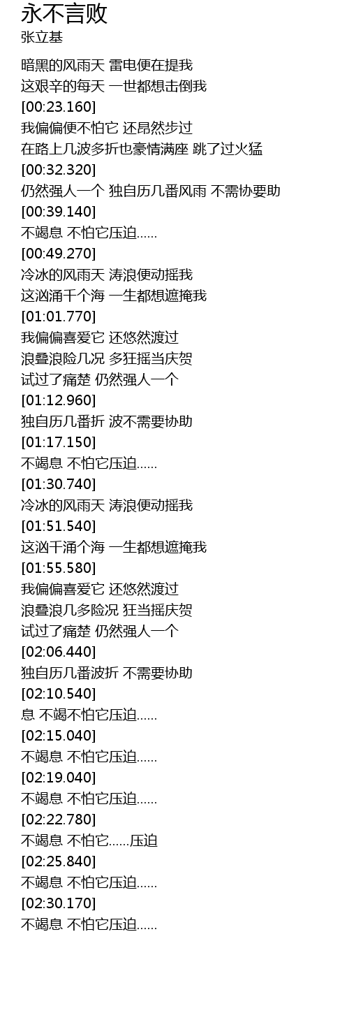 | [02:20.030] | 不竭息 不怕它压迫...... |