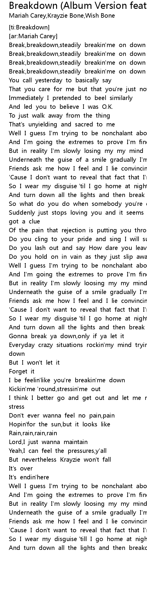 Breakdown (Album Version featuring Krayzie Bone & Wish Bone) Lyrics