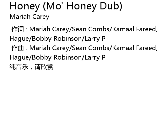 | [00:01.000] | zuo qu : Mariah Carey Sean Combs Kamaal Fareed Steven Jordan Stephen Hague Bobby Robinson Larry P |