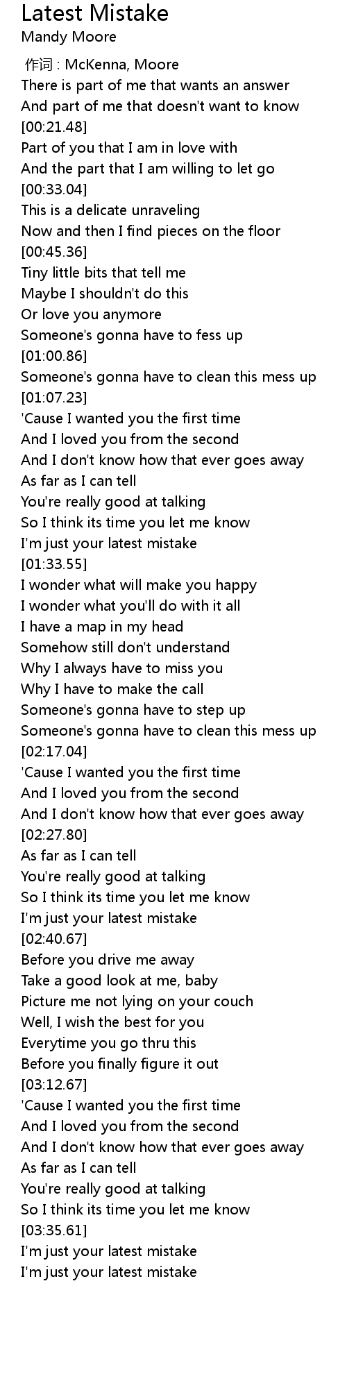 | [03:41.18] | I'm just your latest mistake |
