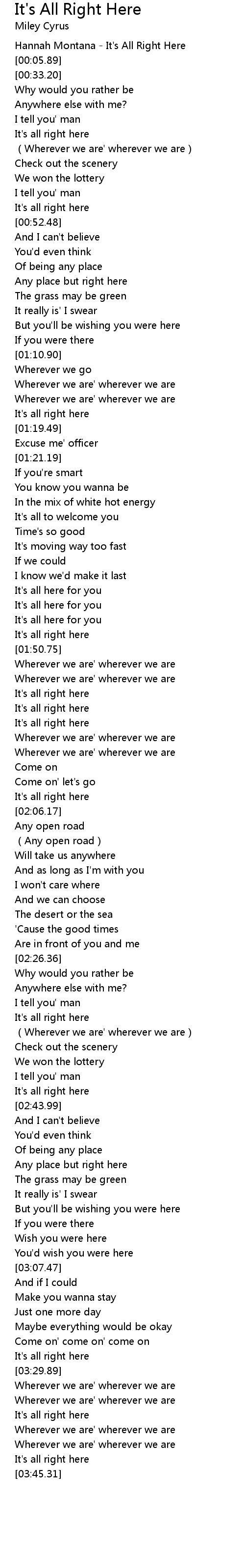 | [00:01.12] | Hannah Montana - It's All Right Here |