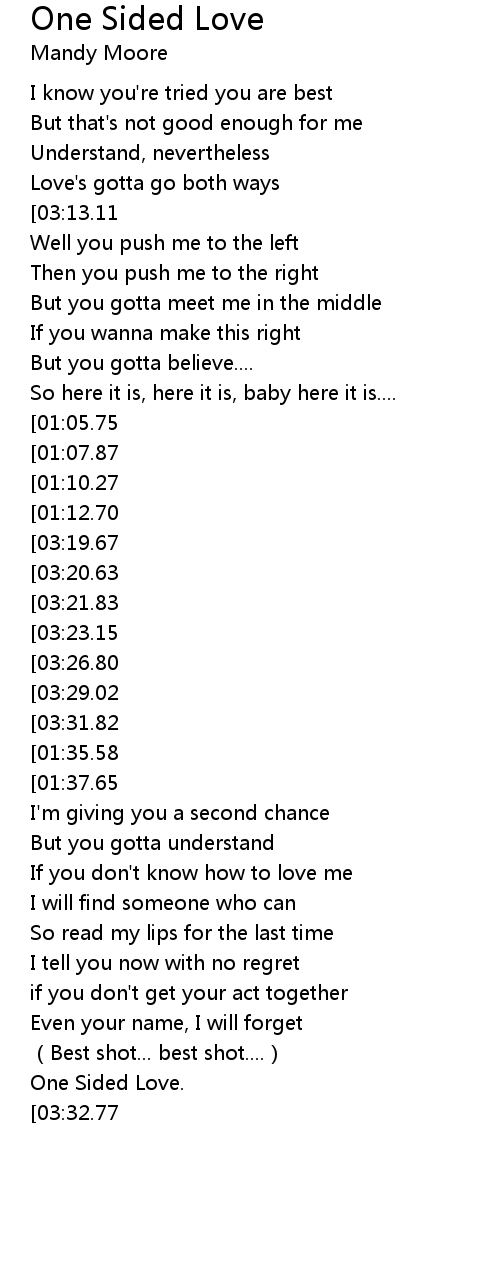 | [03:36.25][03:19.67][02:27.04][01:19.67] | One sided love |