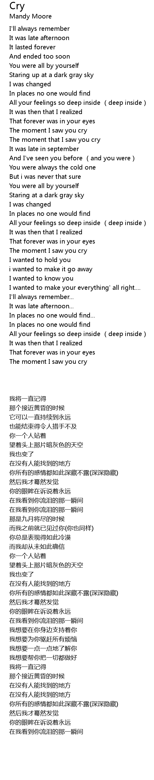 | [00:55.36] | The moment I saw you cry |