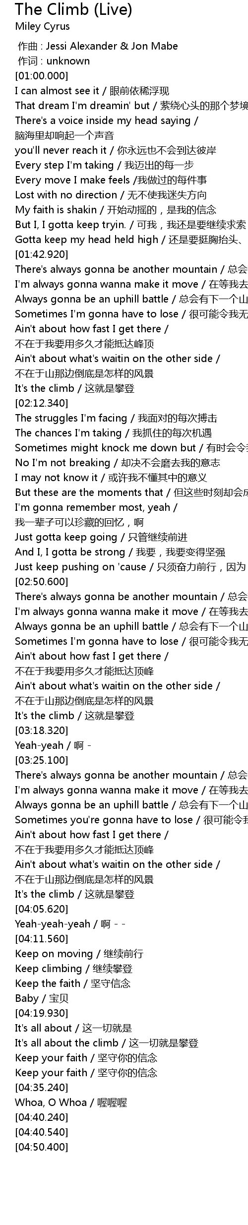 | [04:15.100] | Keep climbing / 继续攀登 |