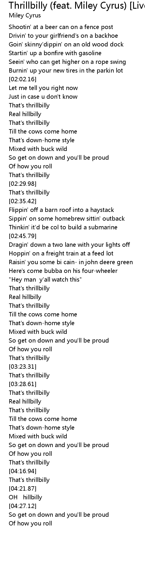 Thrillbilly (feat. Miley Cyrus) [Live] Lyrics