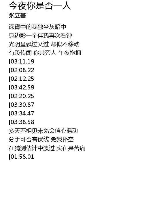 | [03:19.11][02:12.25][01:09.62] | 让我知应继续 或再不应继续 |
