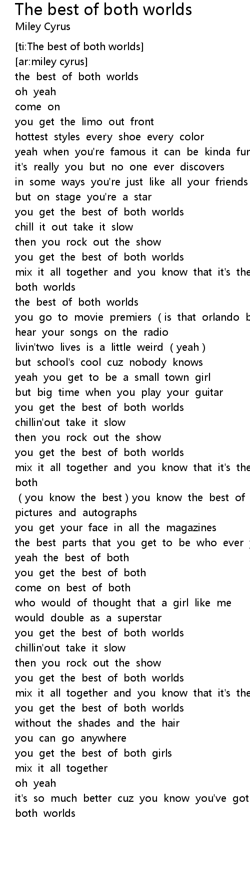 | [01:36.77] | (you know the best)you know the best of both worlds |